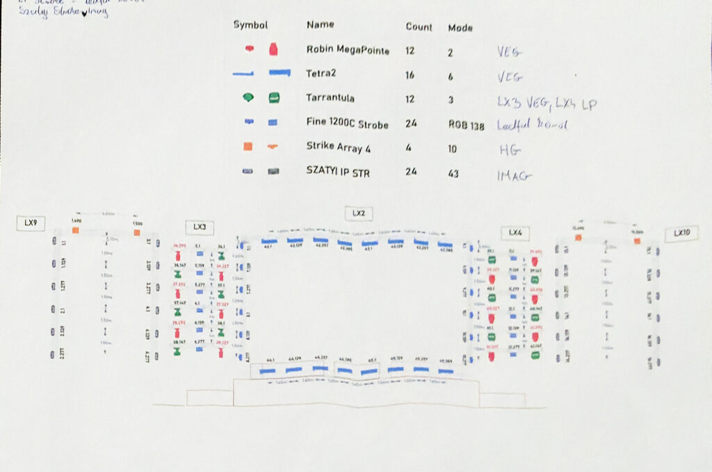 Koncert megvilágítása, fények, lámpaterv
